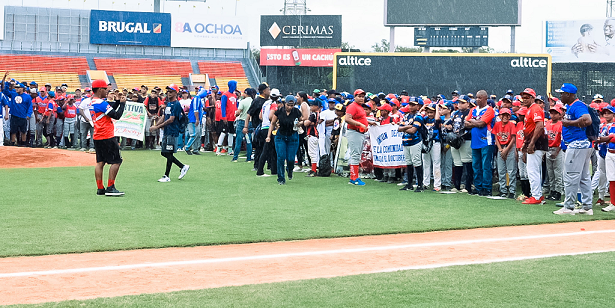 Seguido por la entonación del Himno Nacional y la invocación religiosa del diácono Sildo Hernández. Justo en ese momento, una lluvia ligera cubrió el estadio, obligando a los presentes a trasladarse a las gradas techadas, donde, a ritmo del merengue “La lluvia no para mi fiesta”, continuó la ceremonia en un ambiente más íntimo pero igual de vibrante.