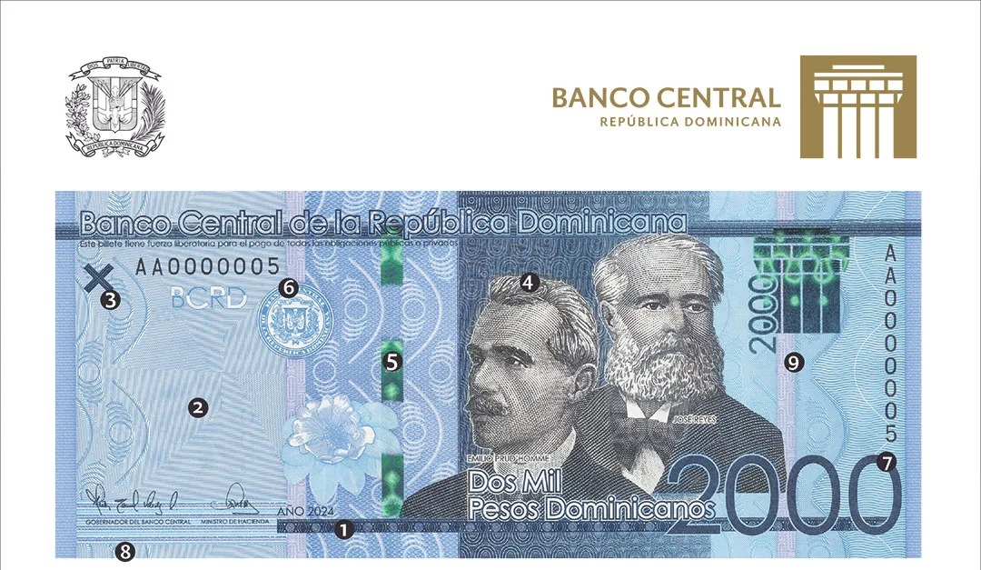 El Banco Central de la República Dominicana (BCRD) informó que a partir del lunes 12 de mayo de 2025 comenzarán a circular nuevos billetes de RD$2,000.00 correspondientes al año 2024.