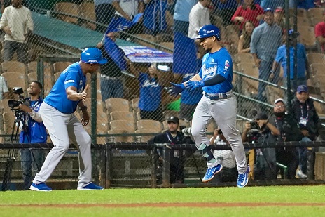 Mejía conectó su cuadrangular con las bases llenas frente al abridor Phillips Valdez, quien resultó el pitcher perdedor, además de un imparable empujador para totalizar cinco vueltas empujadas en el partido.