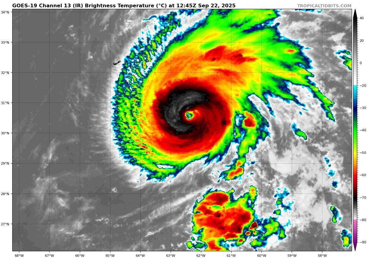 Miami (EE.UU).- El huracán Gabrielle se intensificó este lunes a categoría 3 en la escala de Saffir-Simpson, con vientos sostenidos de 195 kilómetros por hora (120 millas por hora), y se prevé que su centro pase esta noche al este de Bermudas, mientras su oleaje ya impacta la costa este de Estados Unidos.