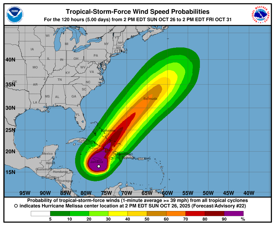 El director del Insmet, Celso Pazos, precisó que Melissa es un huracán de «gran intensidad», acompañado de vientos superiores a 200 km/h y lluvias intensas que representan uno de los factores «más peligrosos» de este sistema, el cual generará inundaciones a su llegada a la costa suroriental cubana.