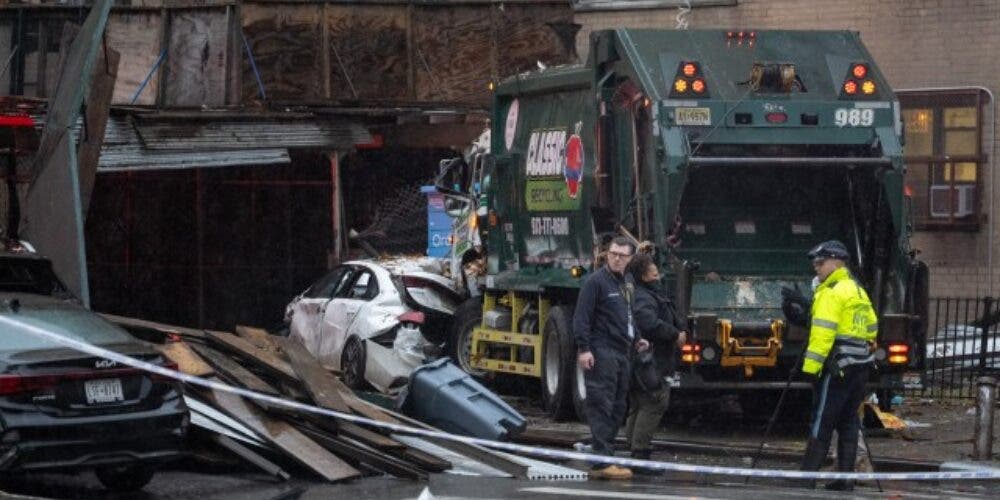 El accidente ocurrió poco antes de las 6:30 hora local (11:30 GMT), en la calle 101, cerca de la Primera Avenida, en el barrio de East Harlem (Manhattan), cuando un camión privado de la basura en el que iban el conductor y un pasajero se estrelló contra un coche y lo empujó hasta derribar un andamio, que cayó sobre una mujer, causándole la muerte.