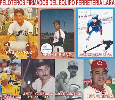 Con motivo del 50 aniversario del equipo de béisbol Ferretería Lara, su patrocinador, Eduardo Lara nos envía una foto con 7 jugadores que firmaron.