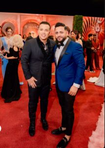 El artista fue entrevistado por diferentes medios así como de una de las presentadoras donde presumió de quién venía vestido, y el desglose de su vestimenta que fue creada por el con ayuda de su hermana.