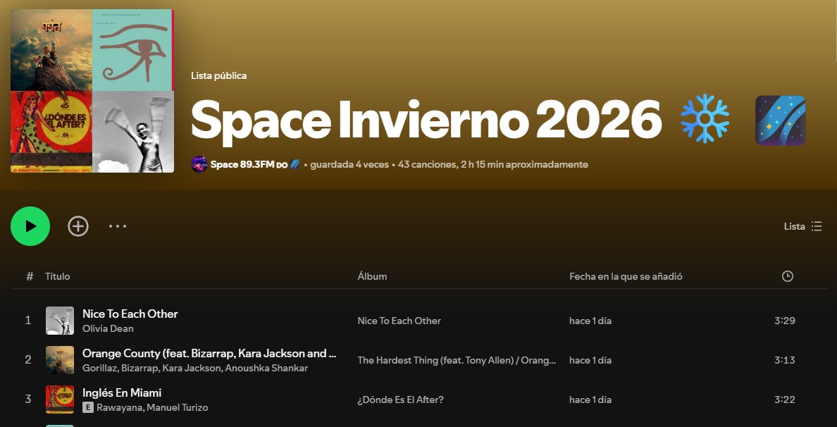 La emisora Space 89.3 FM presenta oficialmente Space Invierno 2026, una playlist curada por su equipo con el objetivo de compartir los descubrimientos musicales que han marcado esta temporada.