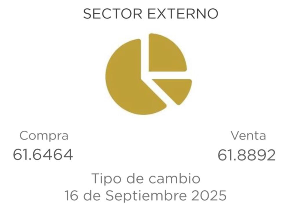 Mientras la tasa de compra pasó de un promedio de 63.53 pesos a 61.64 para una reducción acumulada de 1.89 pesos.