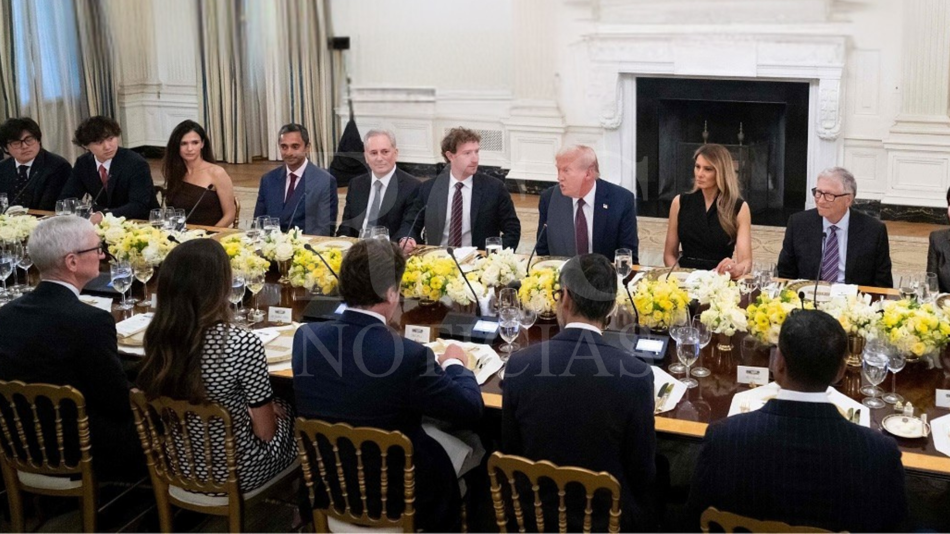 El presidente Donald Trump encabezó un encuentro en la Casa Blanca con los principales ejecutivos de la industria tecnológica global. A la cita acudieron Mark Zuckerberg (Meta), Tim Cook (Apple), Sundar Pichai (Google), Satya Nadella (Microsoft), Bill Gates (Microsoft), Sergey Brin (Google) y Sam Altman (OpenAI), entre otros.